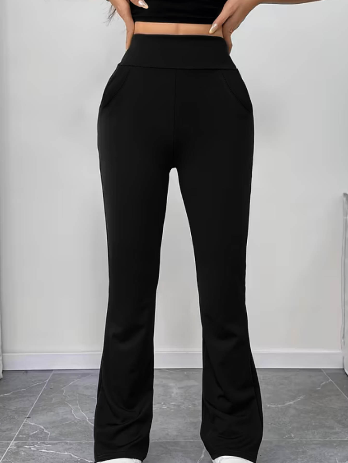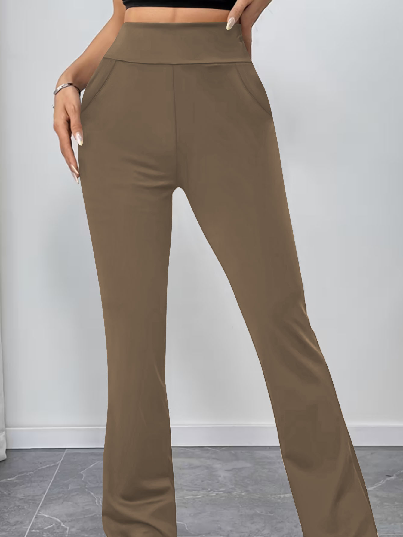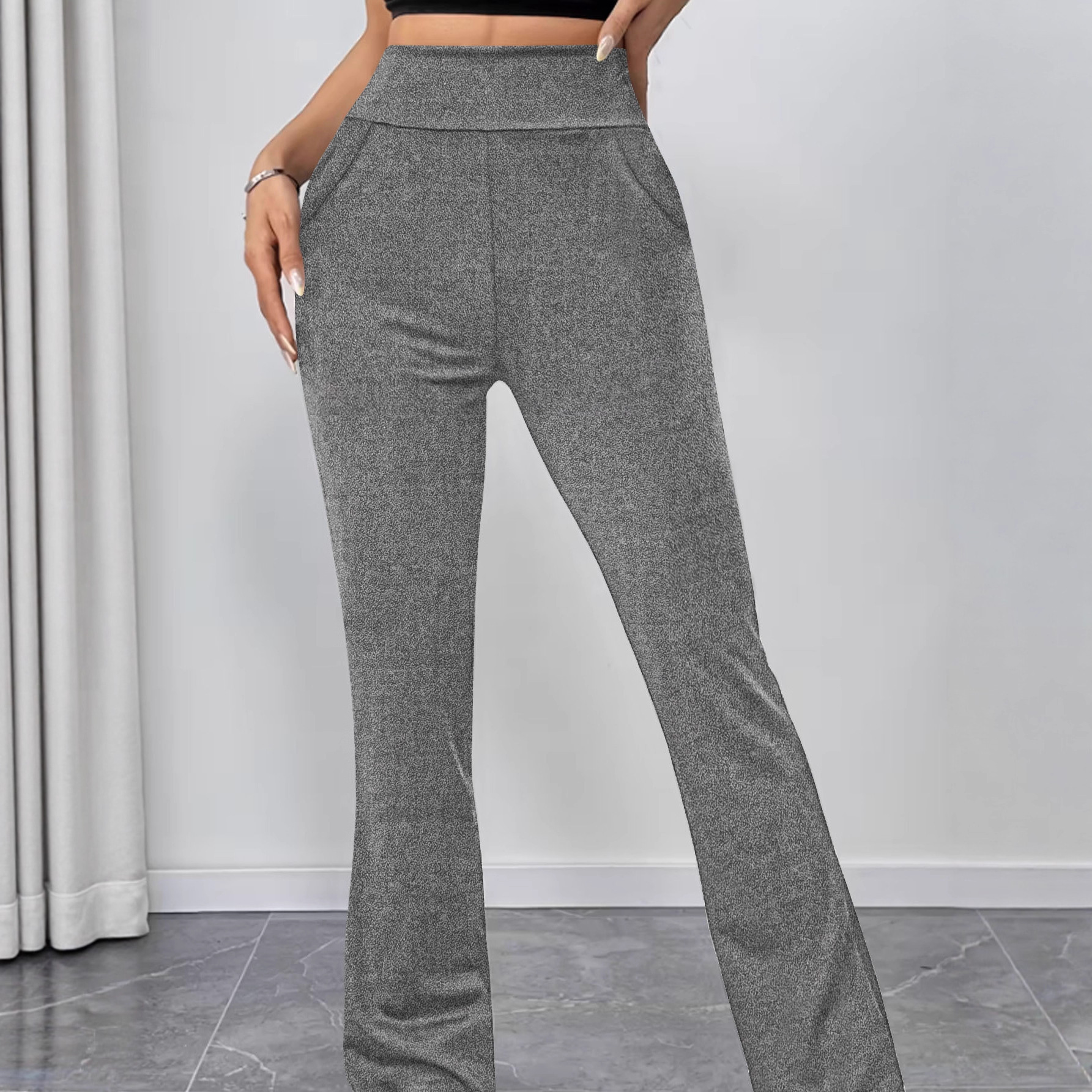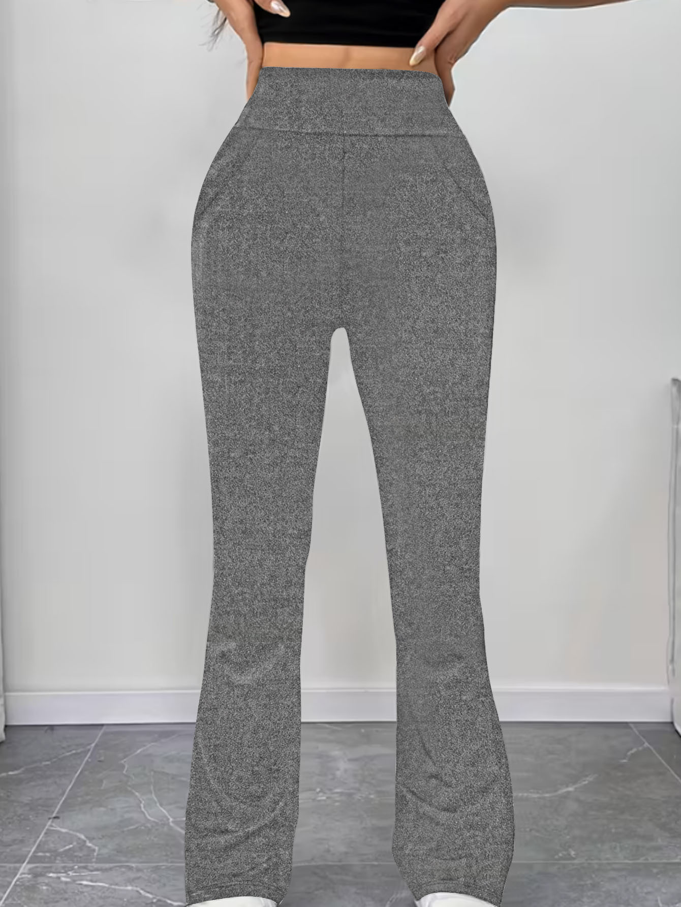 Womens Slimming Solid-Color High-Waist Flared Yoga Pants With Butt-Lifting Design