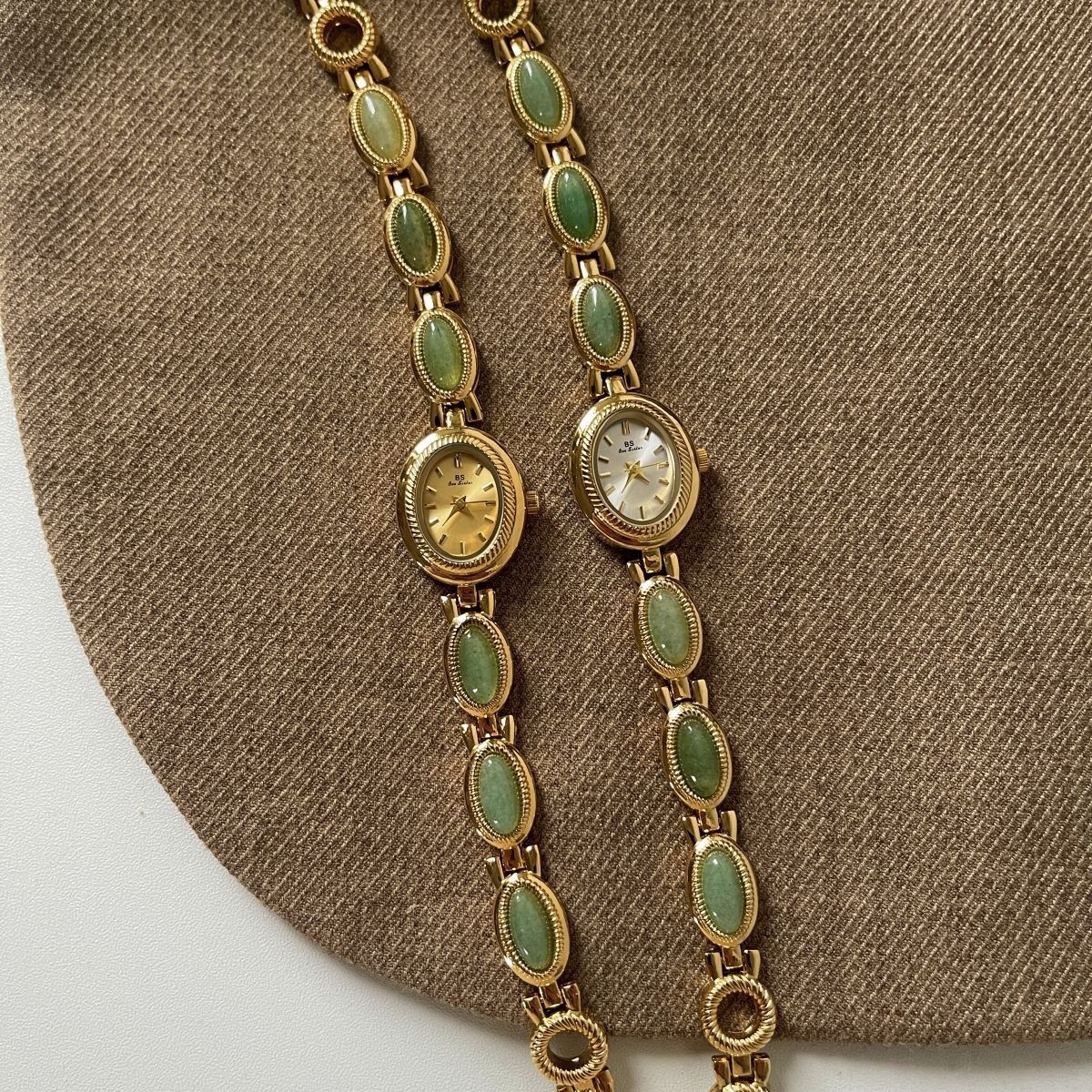 Women’s Small Jade Oval Diamond Quartz Bracelet Watch