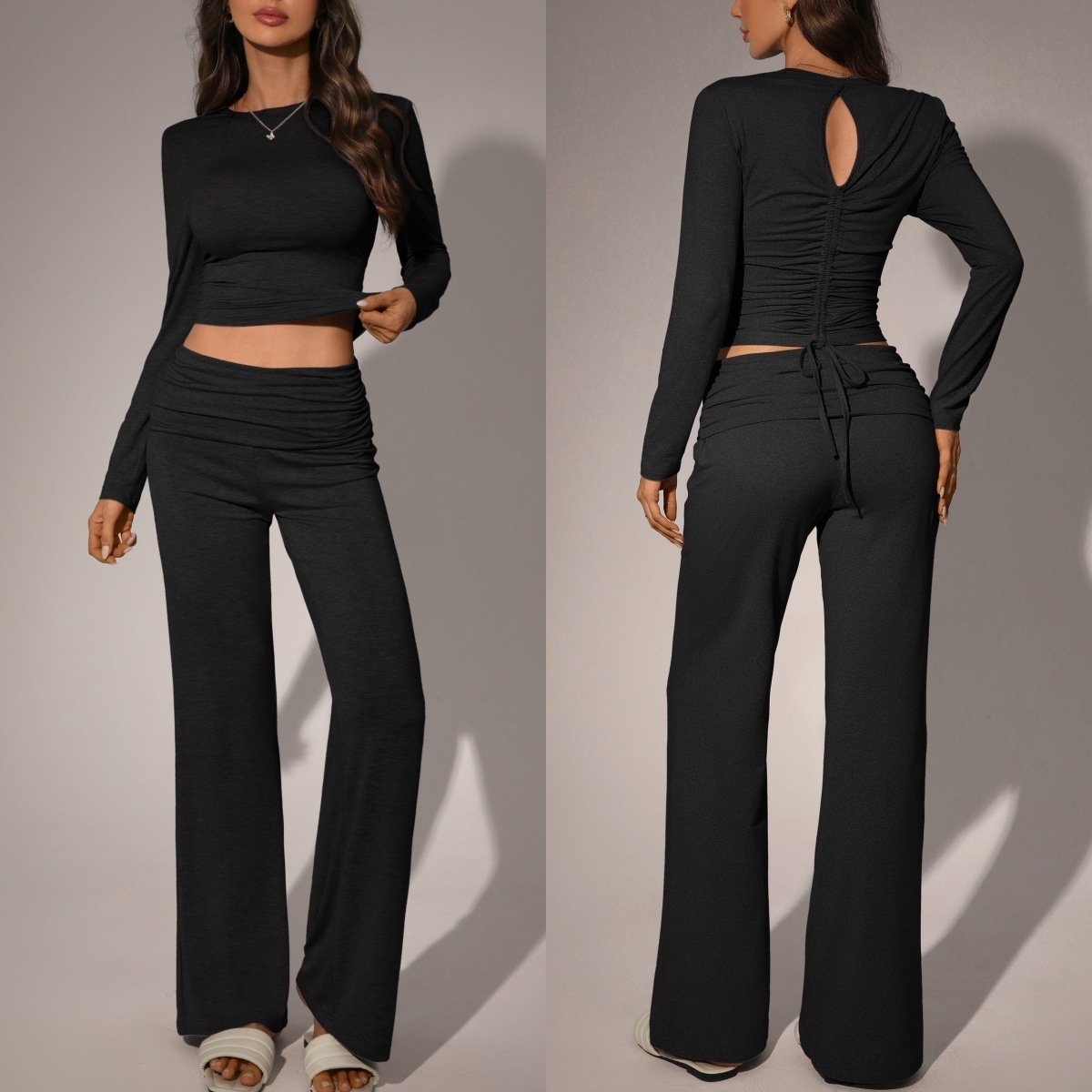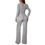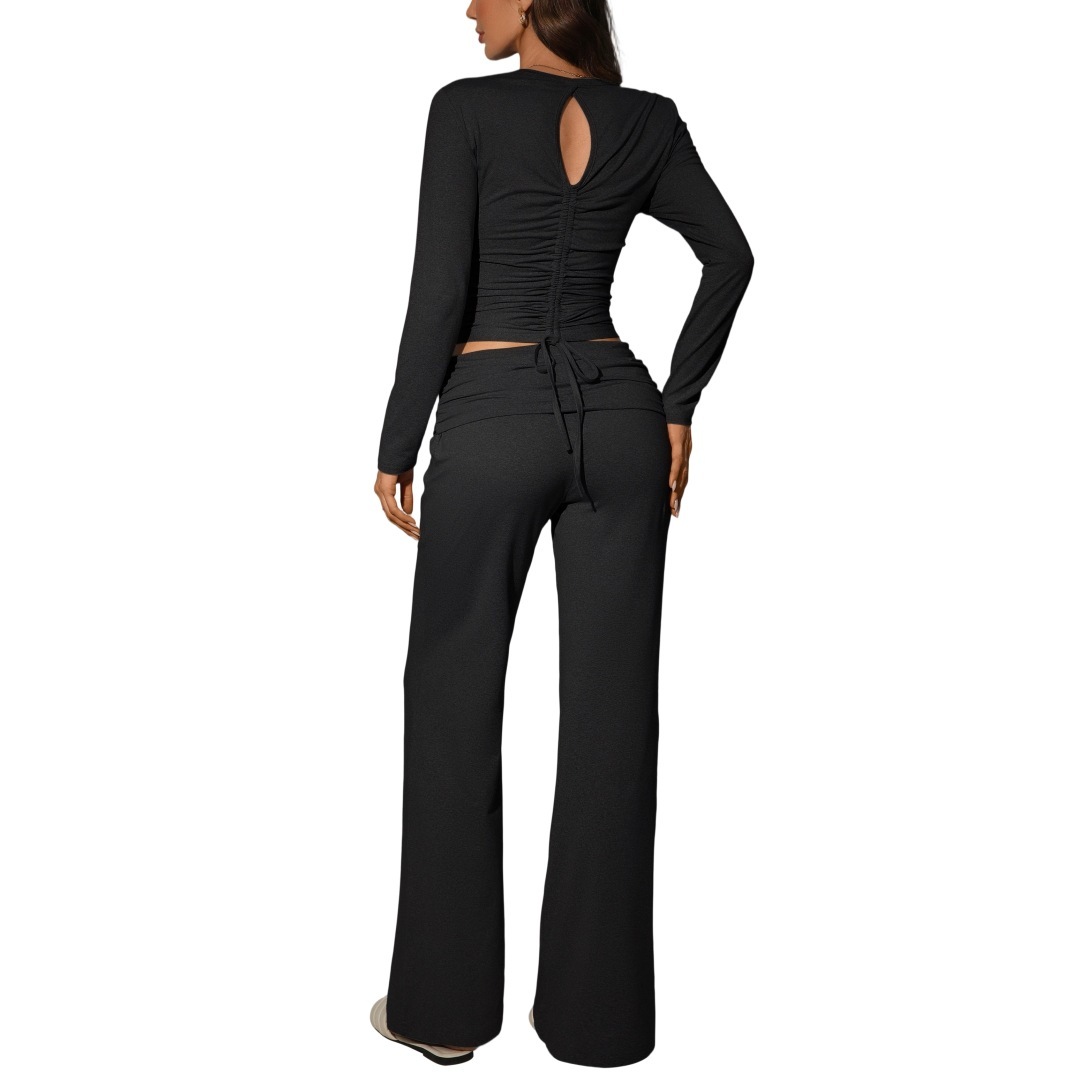 Womens Solid-Color Casual Fashion Top And Pants Set