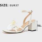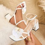 Women’s Square Toe Three-dimensional Flower Solid Color Chunky Heel Sandals