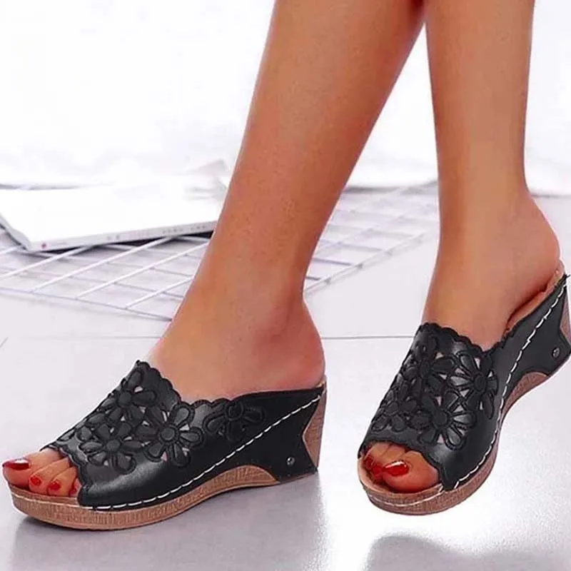 Women’s Summer Wedge Sandals – Slip-On Outdoor Walking Shoes, Retro Ladies Slippers, Casual Footwear