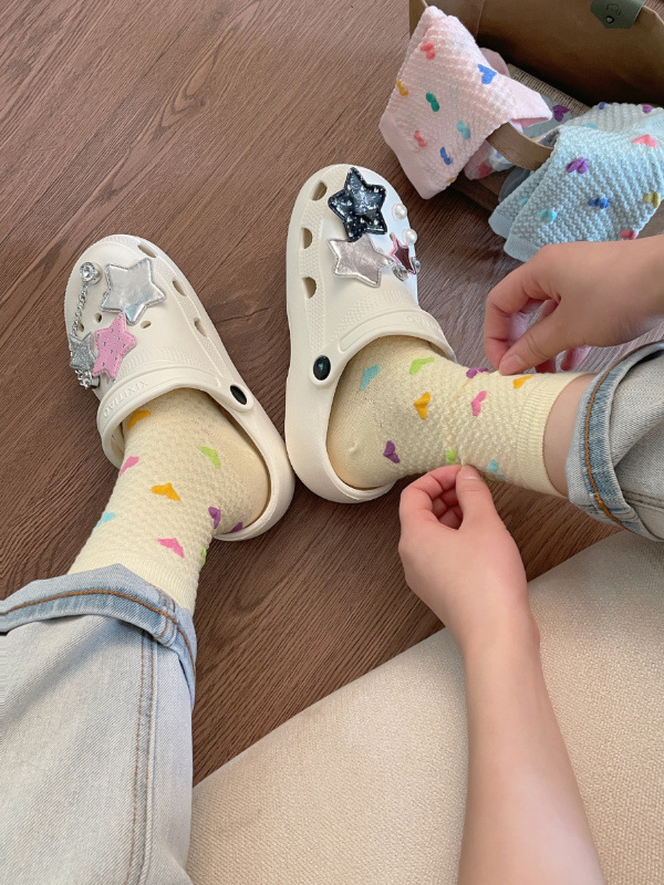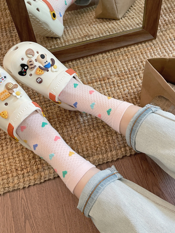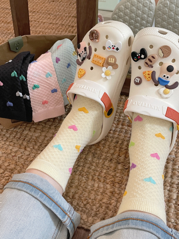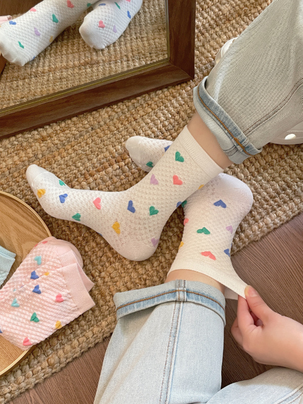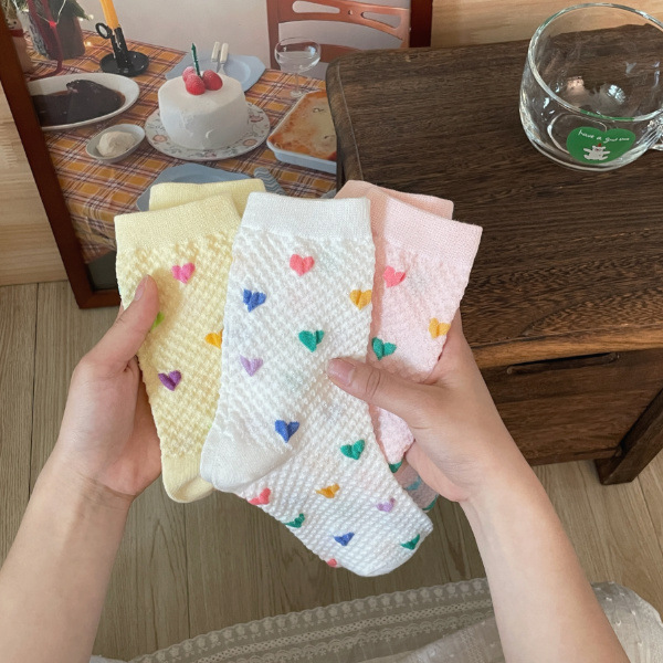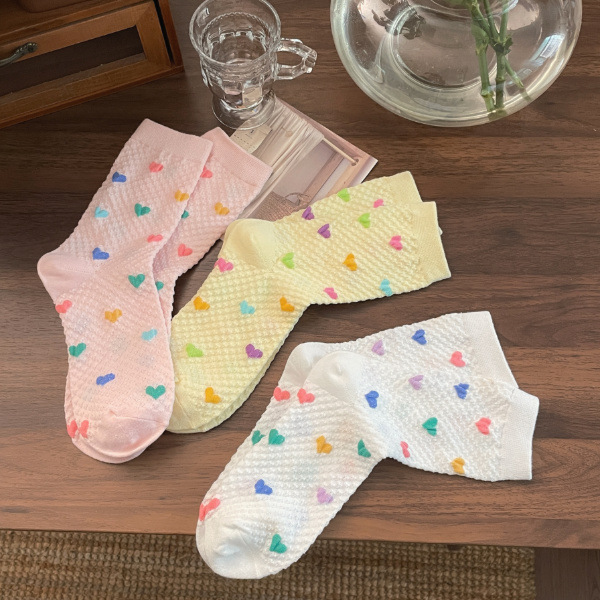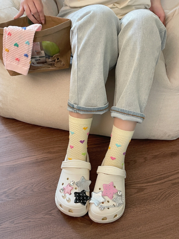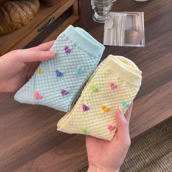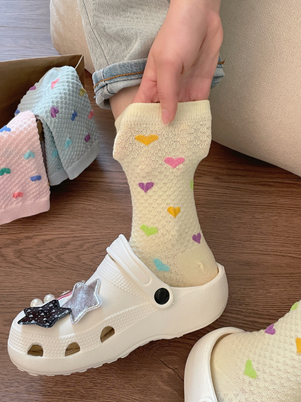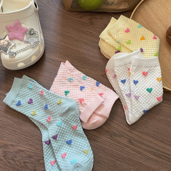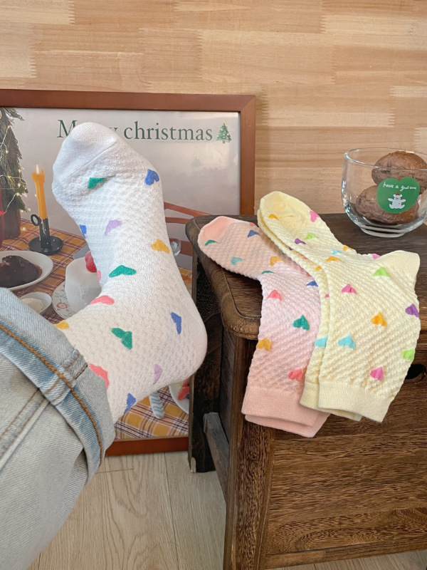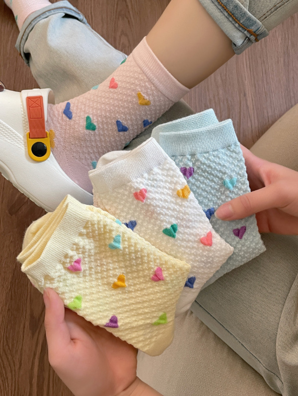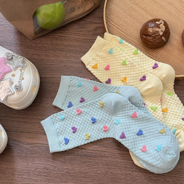 Womens Yellow Socks With Embossed Heart Design