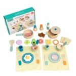 Wooden children’s simulation kitchen toys, early education educational toys, Cookware Pot Pan Cook Pretend Play, food, role-play