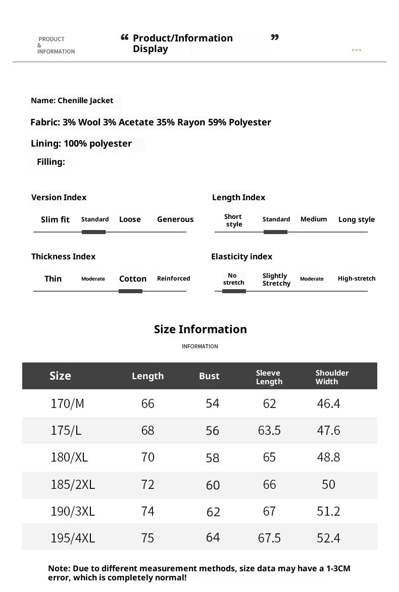 Size: 170/92A, 175/96A, 180/100A, 185/104A, 190/108A, 195/112A