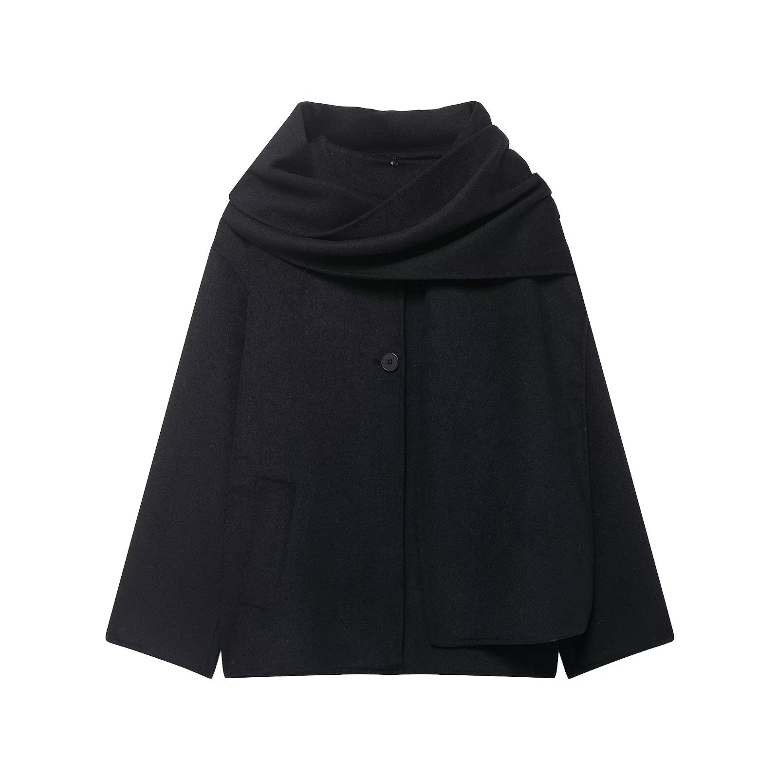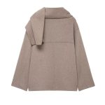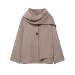 Wool Solid Color Loose Fit Scarf Short Coat Jacket
